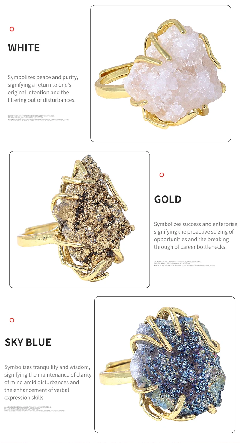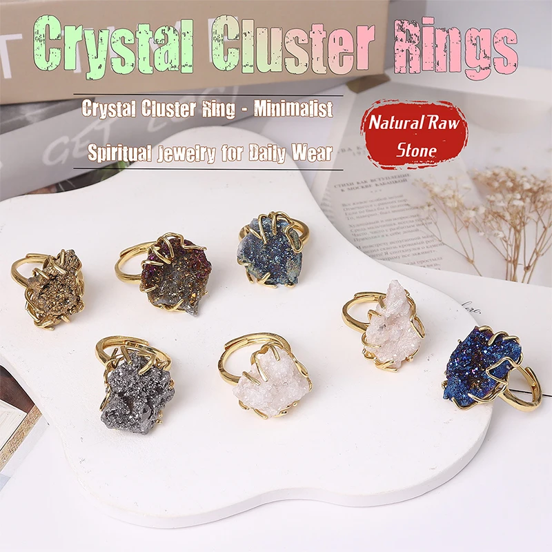 2025 Adjustable Natural Crystal Raw Cluster Ring Colorful Healing Crystal Jewelry Unisex Crystal Wristband Mindfulness Accessory