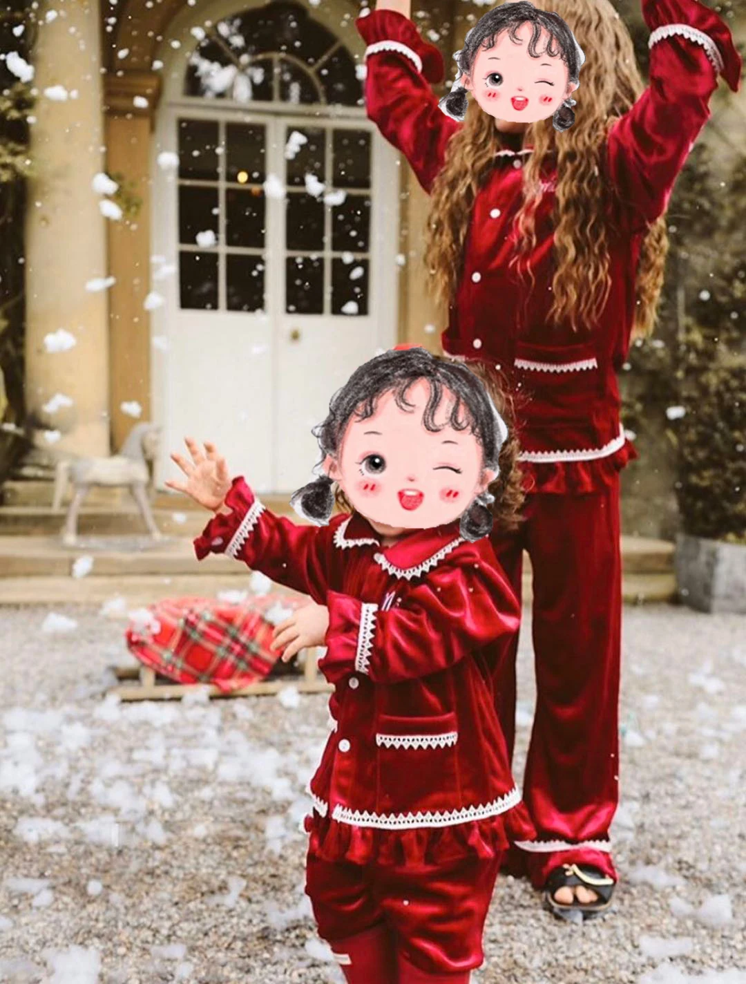 2025 winter family christmas matching outfits loungewear kids girls boys red velvet pyjamas fille cream white pjs set sleepwear