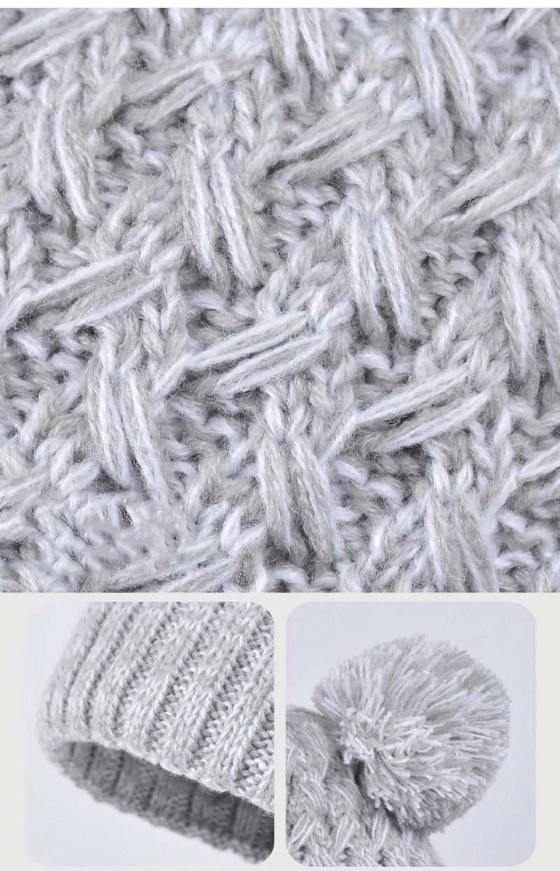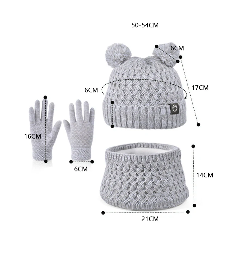 3Pcs Winter Kids Hat Set for Girls Boys Warm Knitted Children Beanie Scarf Gloves Fleece Lining Pompom Children Cap 4-10Y