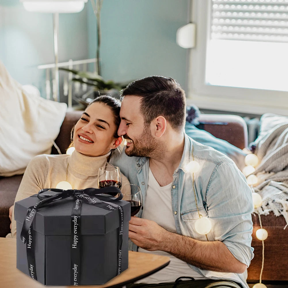 Hexagonal Explosion Box with Photo Album DIY Surprise Explosion Box Handmade Creative for Valentine Day Wedding Proposal