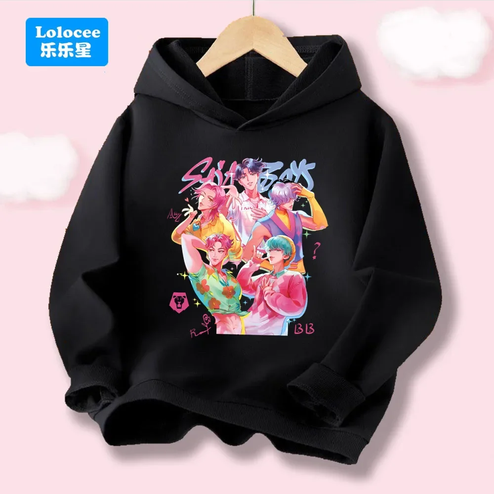 Korean Wave Demon Hunter Loose Comfortable Warm Children's Hoodie Fashion Daily Street Cute Playful Anime Hooded Clothing Top