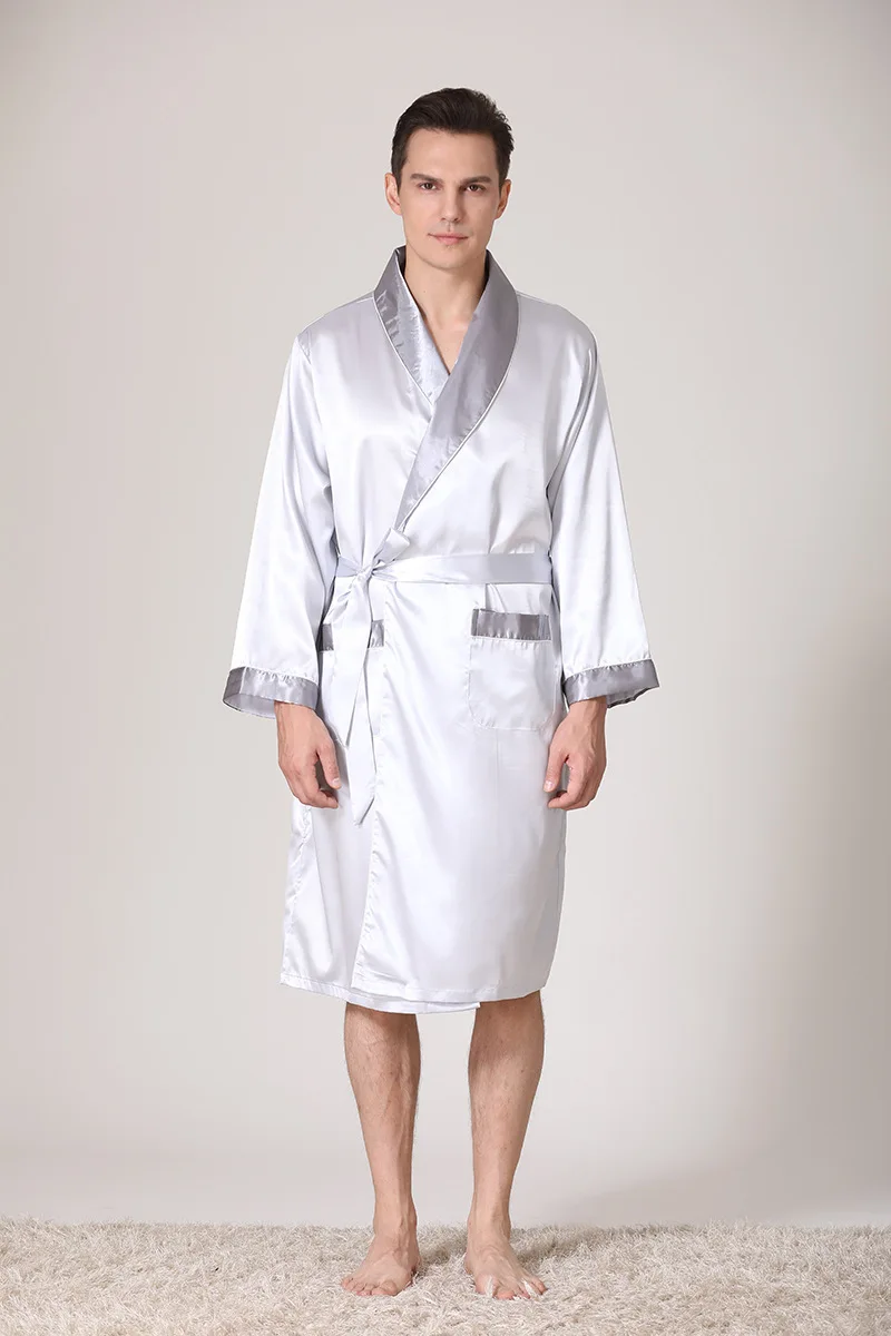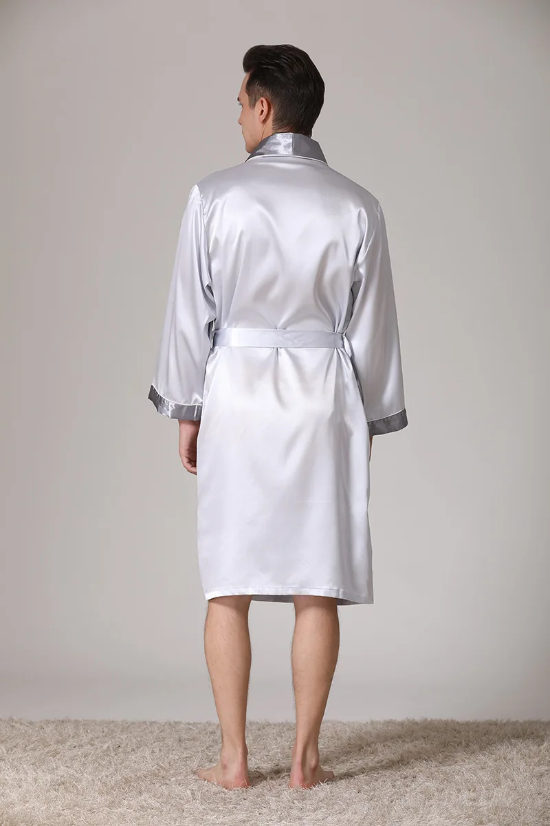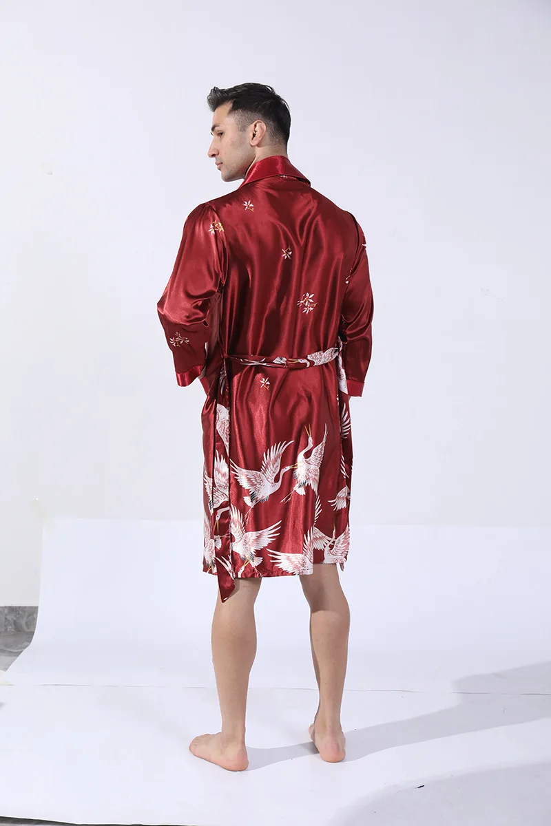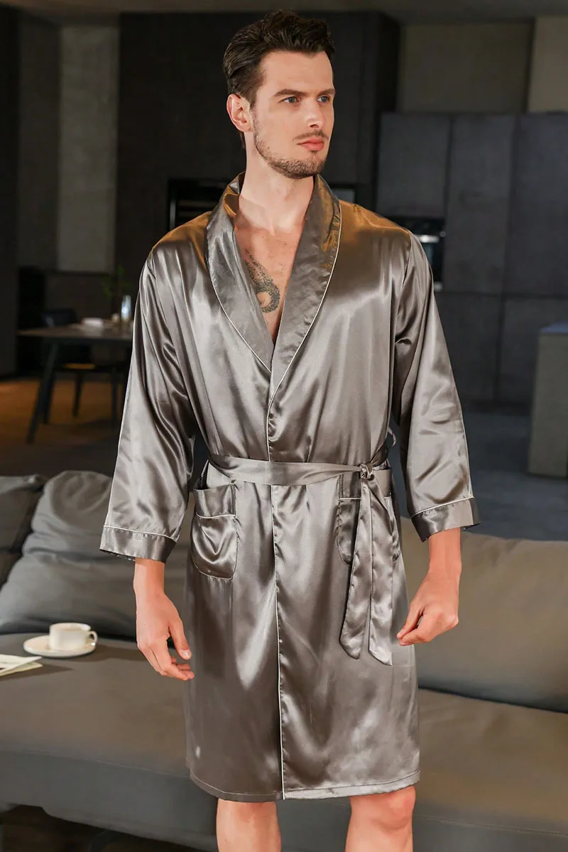 Men Kimono Satin Home Bathrobe Gown Satin Sleepwear Loose Loungewear Lapel Peignoir Homme Loose Nightwear Male Dressing Gown