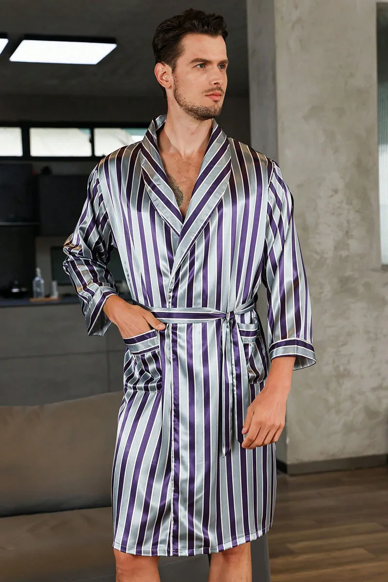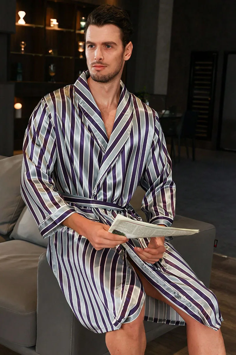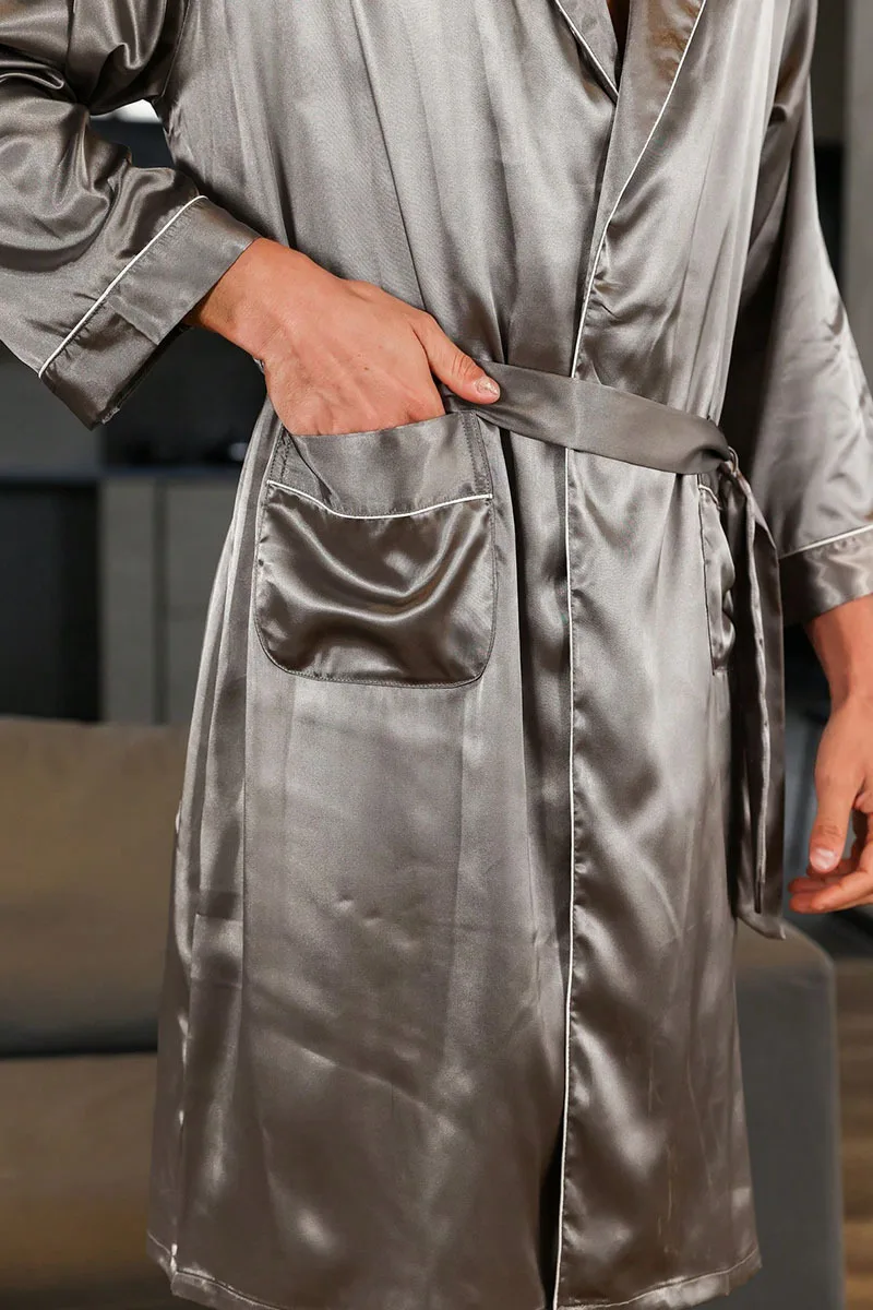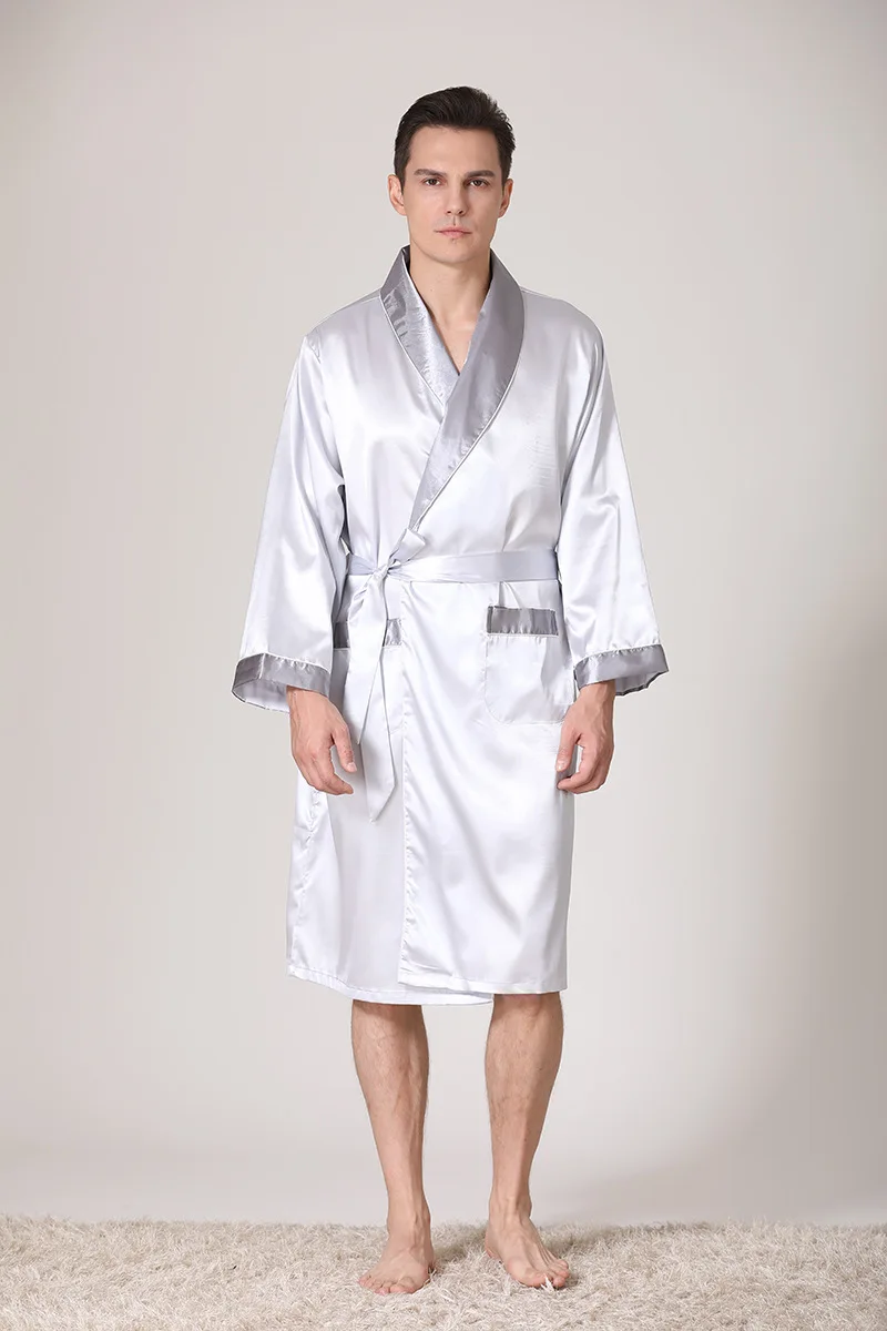 Men Kimono Satin Home Bathrobe Gown Satin Sleepwear Loose Loungewear Lapel Peignoir Homme Loose Nightwear Male Dressing Gown