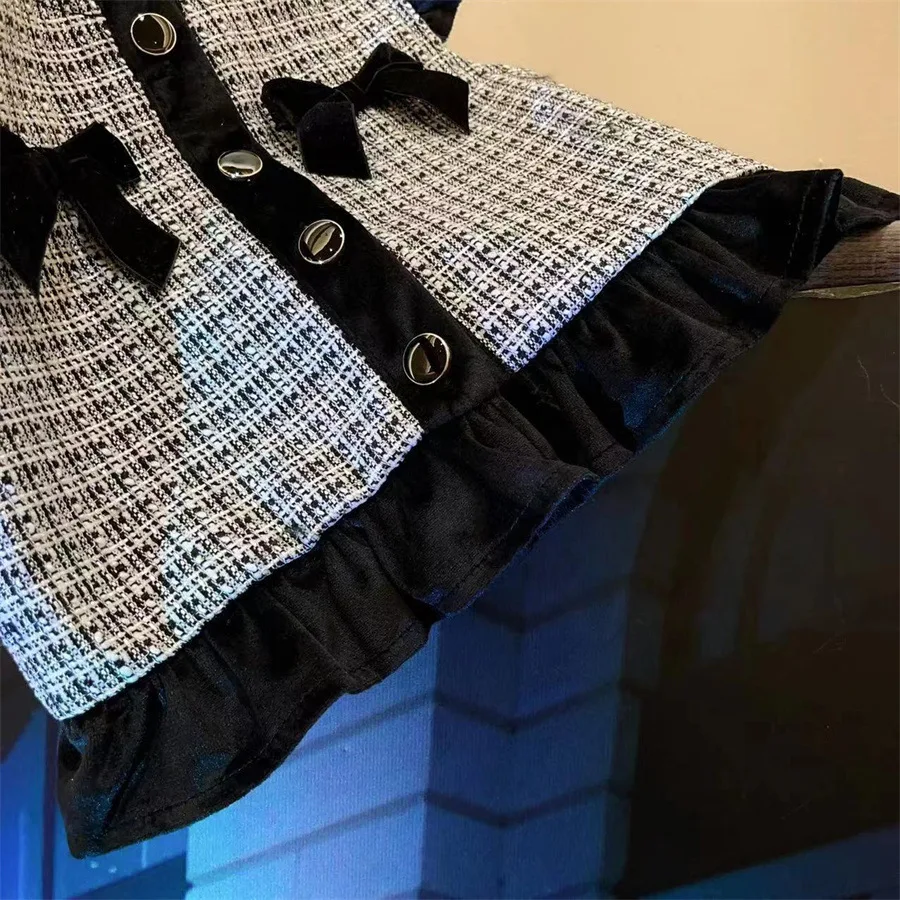 New Girls Autumn Winter Plaid Three Piece Set Solid Long Sleeves Top Boutique Vest Sister Matching Fashion Shorts for Girl
