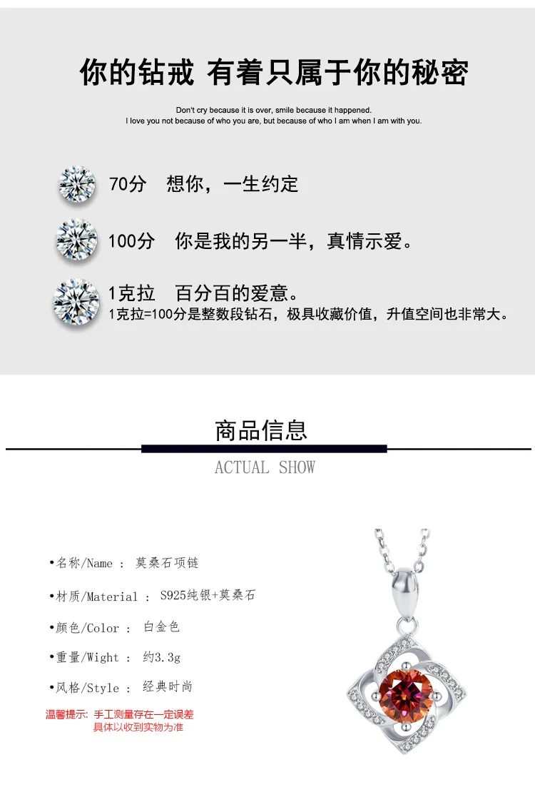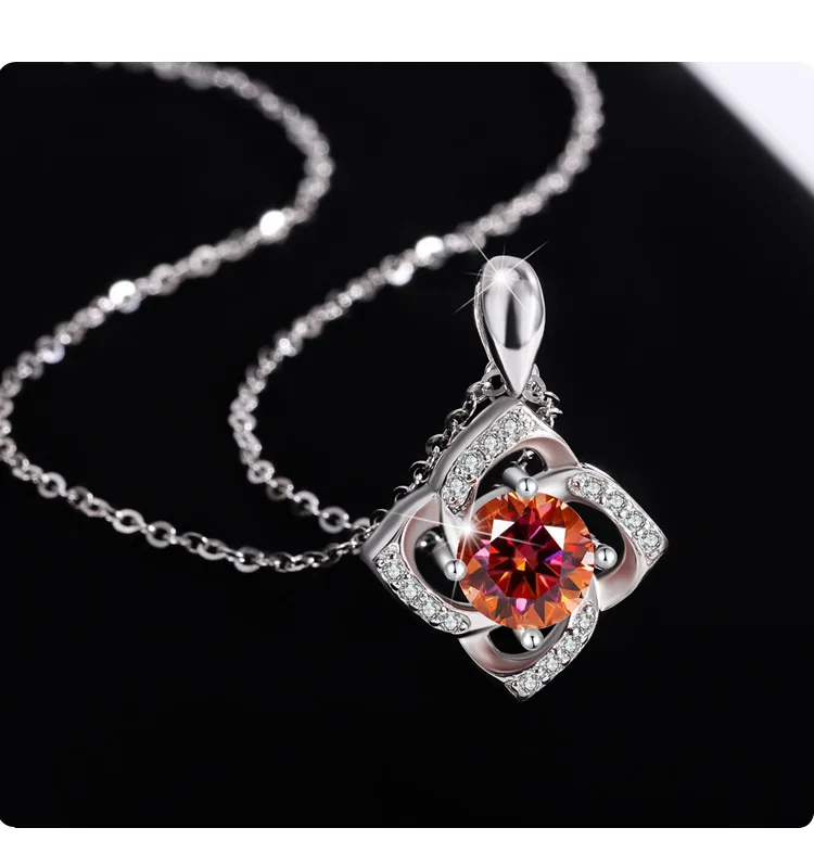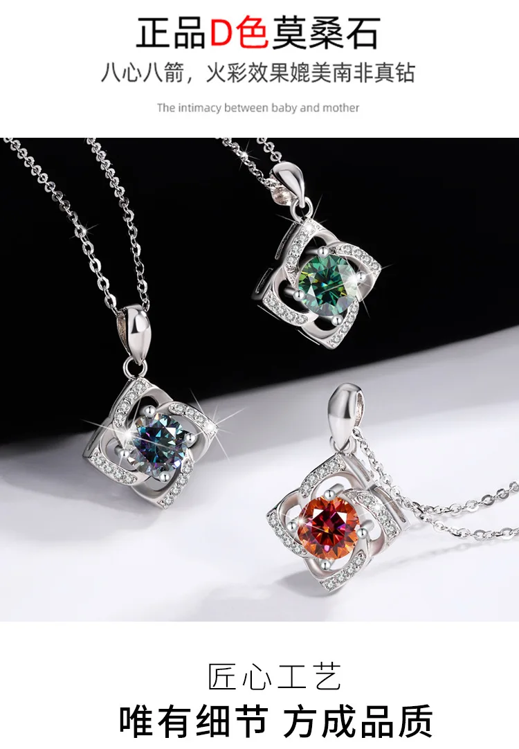 s925 sterling silver four-leaf clover necklace, silver pendant, Moissanite necklace, classic for women