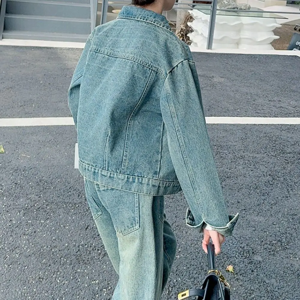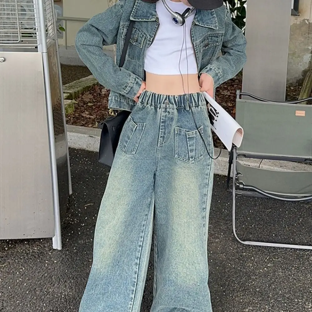 Two Pieces Set Y2K Children Cowboy Set Wide Leg Pants Loose Jeans Jacket Suit Teens Retro Girls Clothes Set Party