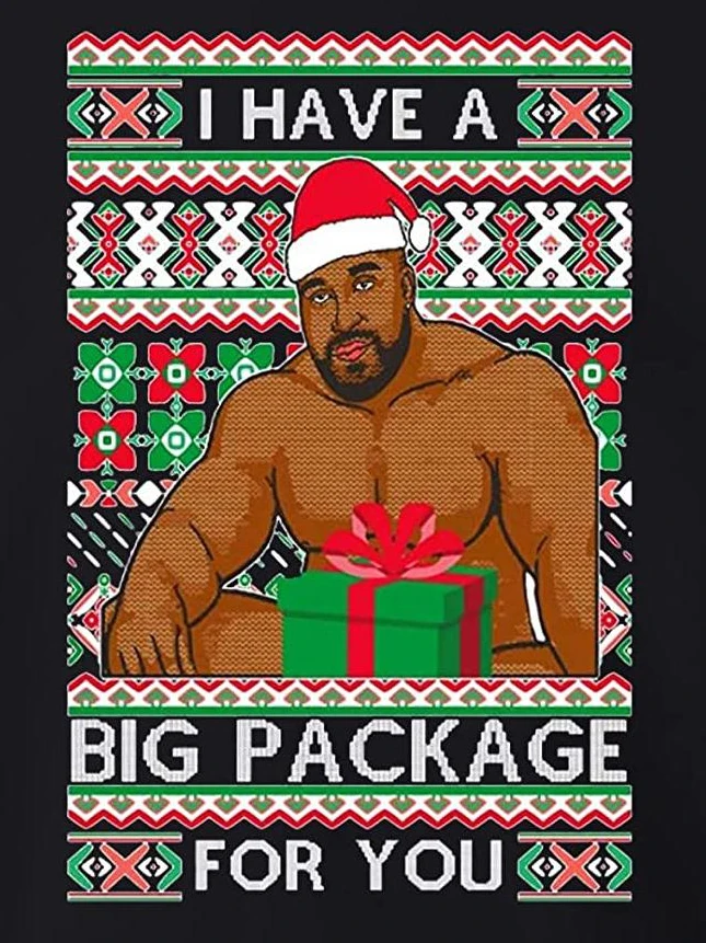 Ugly Christmas Sweater I have a Big package Meme Barry Wood Ugly Christmas Mens Crew Neck