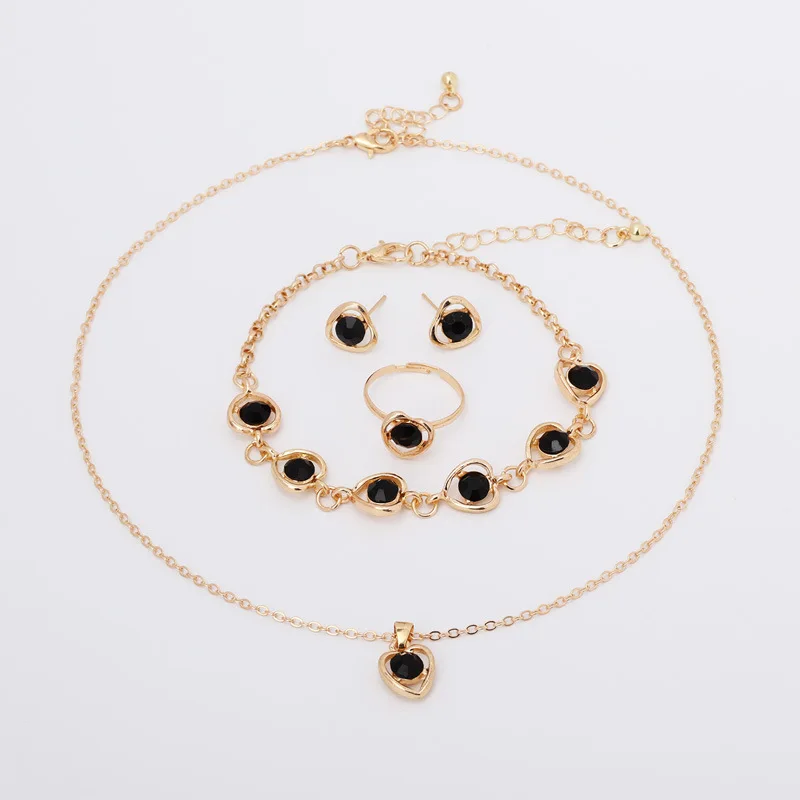 Package includes: 5Pcs(1pcs necklaces+1pcs bracelet+1pcs ring+1pair earrings)